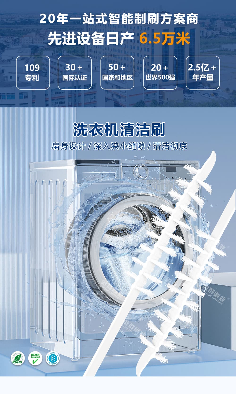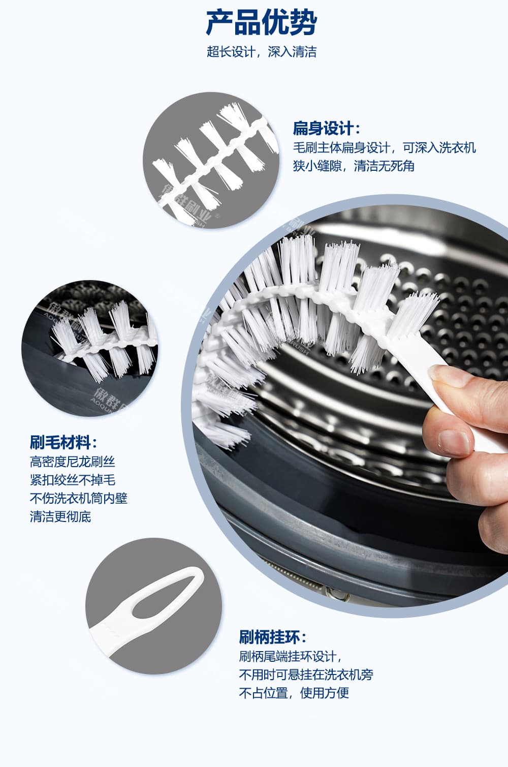 - 產品特點:毛刷主體扁身設計,可深入洗衣機狹小縫隙,清潔無死角