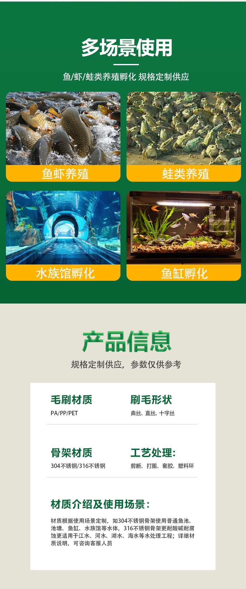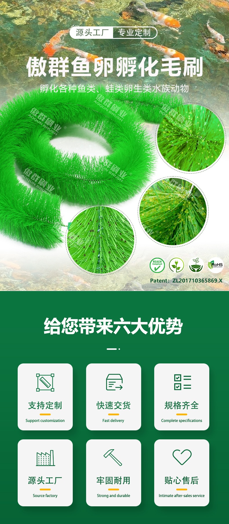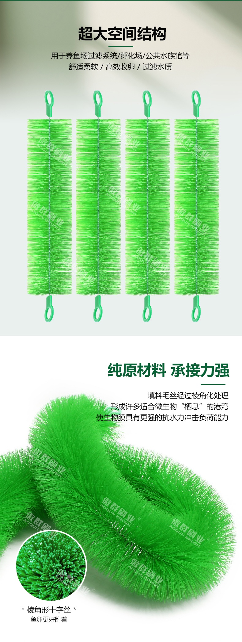 - 功能/用途:用于養(yǎng)魚(yú)場(chǎng)過(guò)濾系統(tǒng)/孵化場(chǎng)/公共水族館等舒適柔軟/高效收卵/過(guò)濾水質(zhì)